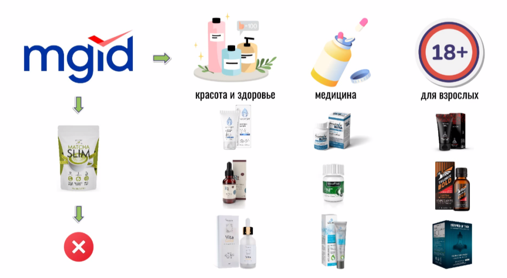 En una promoción, se muestra claramente el nombre del producto. Si la creatividad envía al usuario a una página de destino con un suplemento diferente, no confiará en él. Y definitivamente no se puede llamar “nativo”; literalmente, se está nombrando un producto para la hipertensión en el anuncio.