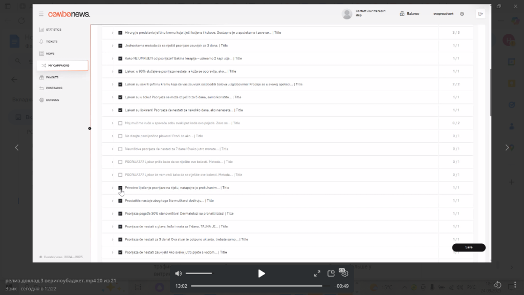 Para segmentar con precisión a la audiencia, es mejor preguntar al gerente qué noticias en qué GEOs tienen un buen rendimiento. Por ejemplo, las noticias en ComboNews sobre métodos sencillos para tratar la diabetes o la ceguera en casa funcionan bien con los residentes de Rumanía, Eslovenia, Polonia y Serbia.