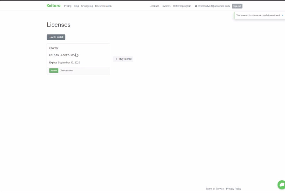 En el sitio web de Keitaro, después de unirse, el código de activación de la licencia estará disponible en su cuenta personal.