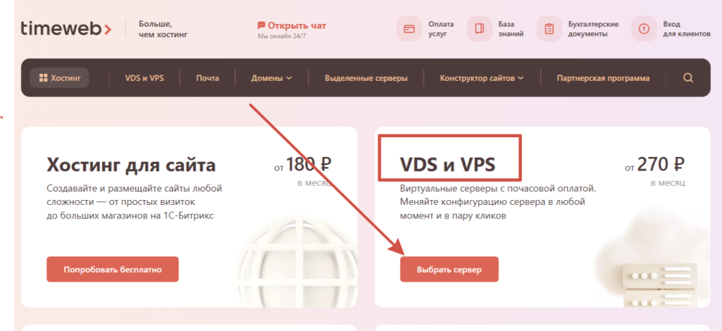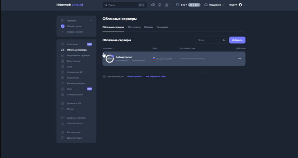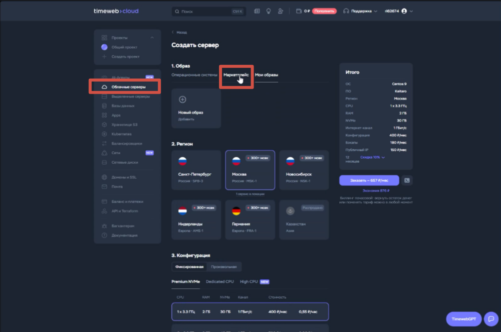 En Timeweb Cloud, vaya a “Cloud Servers” → “Marketplace”.