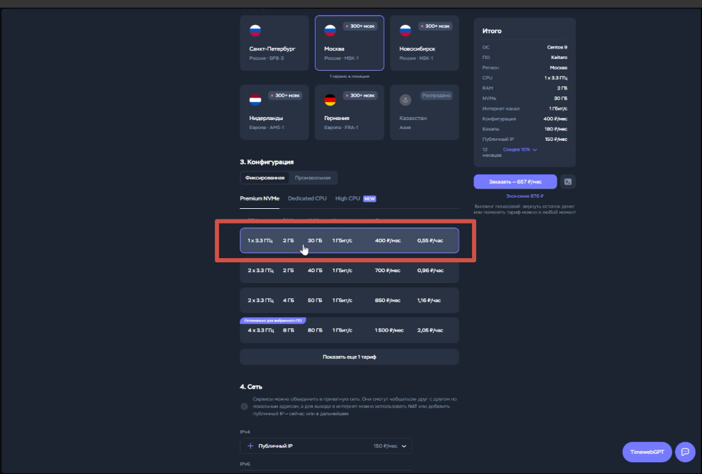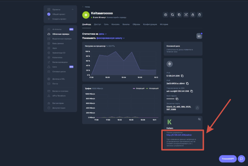 Timeweb para crear el alojamiento. El servicio ya tiene configuraciones preinstaladas para Keitaro. Puedes usar cualquier otra opción.