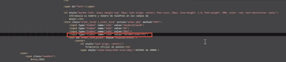 Encontramos la línea del formulario de pedido y borramos la ruta, aportándole a “order php”.